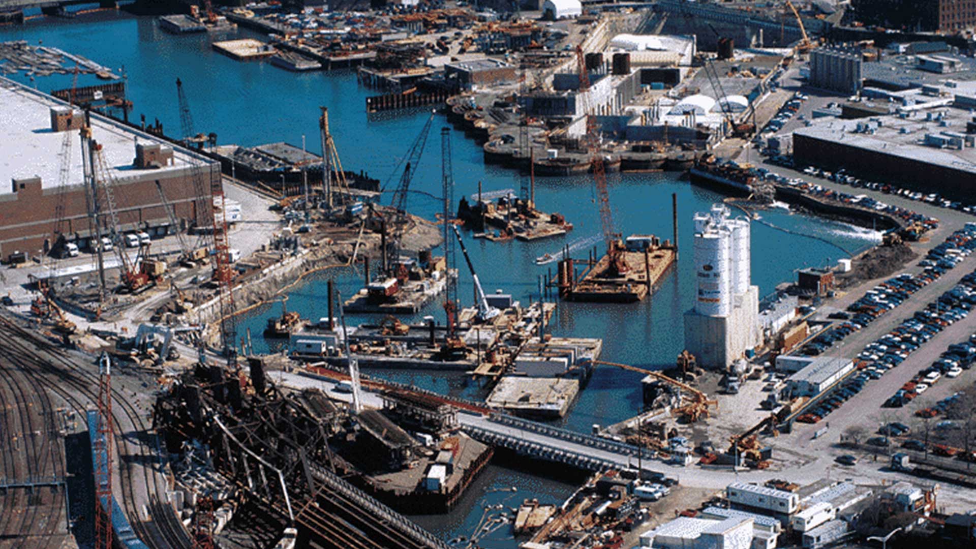 In the 1980s, public works projects were planned, stimulating interest in the Fort Point area and the South Boston waterfront. These projects were underway by the final decade of the 20th century. While a Central Artery highway project tunneled through Boston’s downtown, another underground connection tunneled from the Mass Pike, under the Channel, the Fort Point district, and Boston Harbor to connect with Logan Airport. The MBTA began construction of a public transportation transitway under the Fort Point Channel, and the Massachusetts Convention Center Authority began construction of its Convention & Exhibition Center at Fort Point’s eastern edge. This CASHMAN JV project was one of many ongoing at the time.