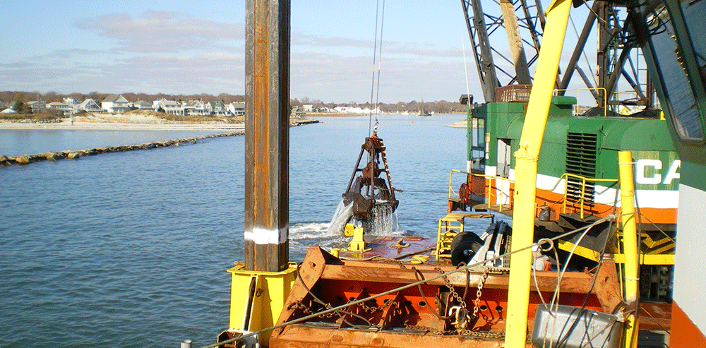 The Project consisted of Dredging the Entrance Channel and Anchorage Area to depths of -8 and 6 feet at Mean Low Water, with 1-foot over-dredge allowance.  This resulted in removing an average of over 4 feet of material throughout the project site. CASHMAN DREDGING removed over 18,000 cubic yards of hard-packed sand from the Entrance Channels which was disposed at a nearshore disposal site just outside the west jetty.  Over 62,000 cubic yards of material, consisting of mostly mud, were removed from the Anchorage and Turning Basin Areas and were disposed of at the Massachusetts Bay Disposal Site, which is located approximately 12 miles off Salem, Massachusetts.