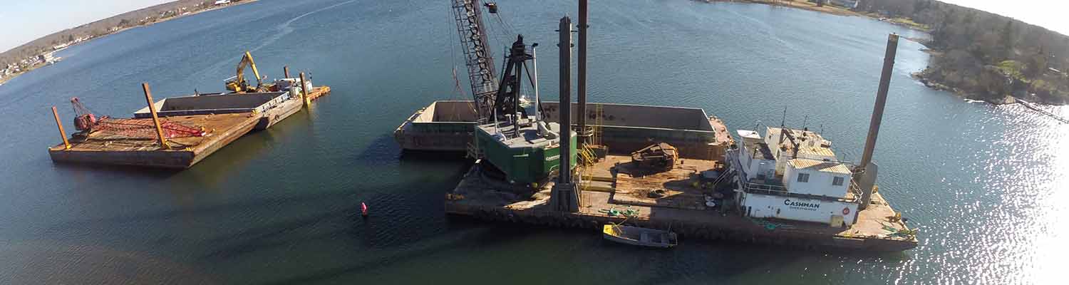 The Mystic River separates the towns of Stonington and Groton in New London County in southeastern Connecticut and is on Fishers Island Sound, the eastern arm of Long Island Sound. The overall Mystic River Federal Navigation Project consists of a 15-foot channel, 125 feet from the Sound up to the railroad bridge and 100-feet wide up to the U.S. Route 1 bridge; a 12-foot channel above the highway bridge to the upper wharves at the Seaport Museum; a 9-foot x 8.5-acre anchorage in the harbor north of Mason Island; and a 9-ft. turning basin above the railroad bridge. CASHMAN conducted maintenance dredging in those channels. The project required the removal of 159,000 yd3 of material by mechanical dredge from the Federal Channel with the removed material transported by scow and disposed at the New London Disposal Site (located ~5 miles from the mouth of the Mystic River). CASHMAN also was responsible for the removal of ~27,000 yd3 of material by mechanical dredge from the State Channels with disposal at the Central Long Island Sound Disposal Site (located ~35 miles from the mouth of the Mystic River).